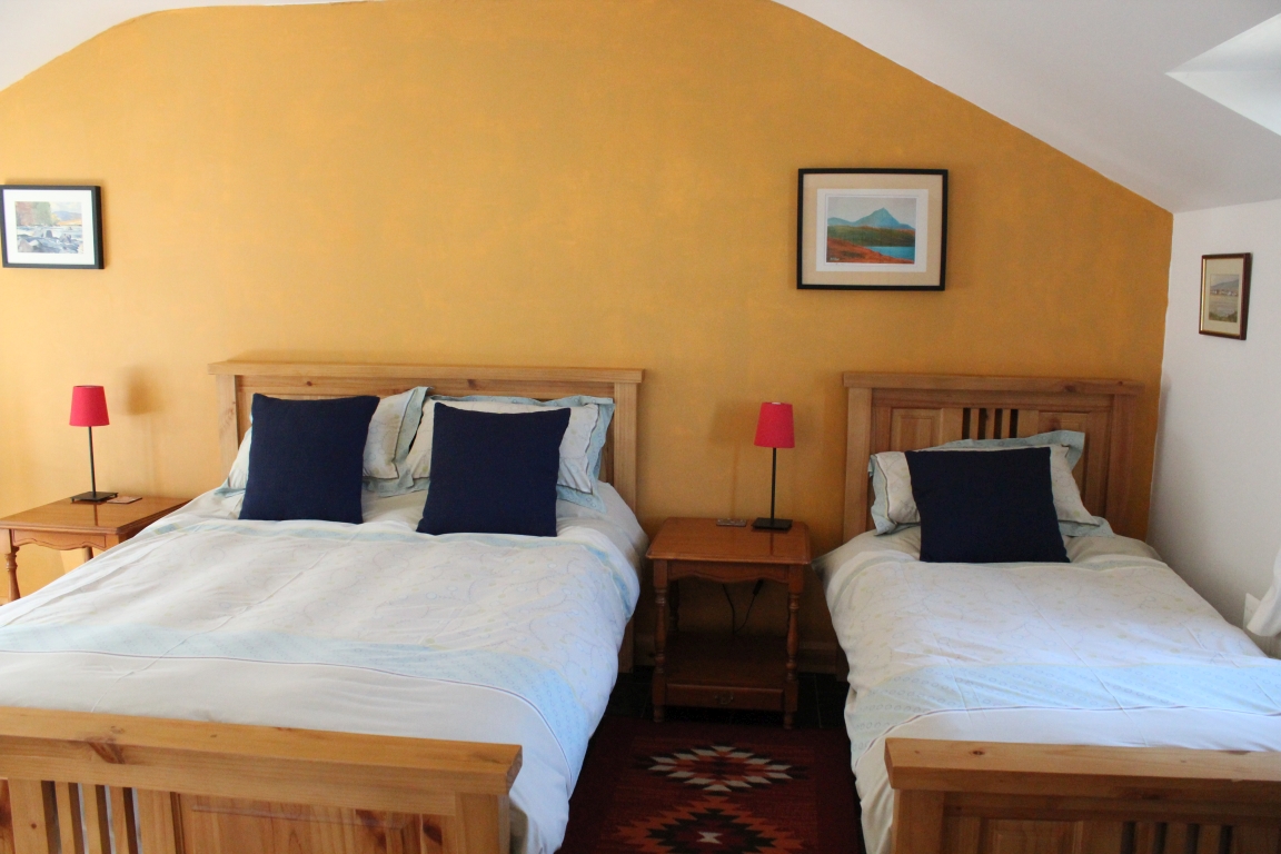 Bedroom Three is on the first floor, with glimpses of Horn Head and the sea in the distance, and now has an additional single bed, so Bedroom Three can accommodate up to three people.
